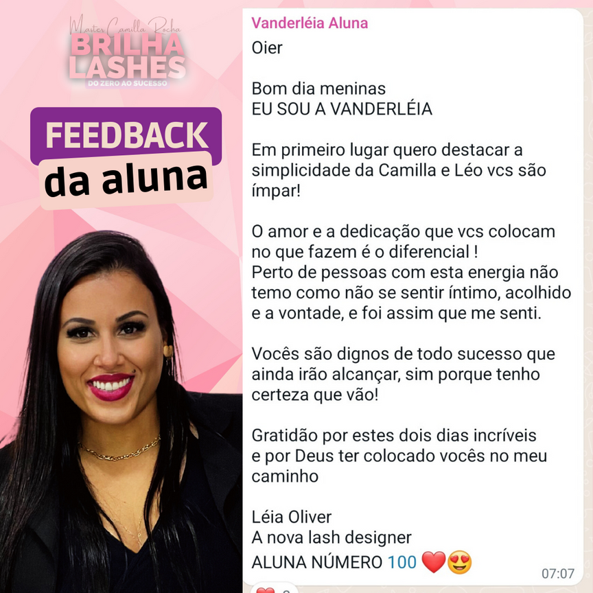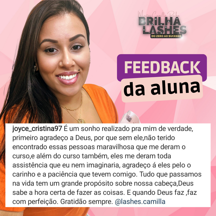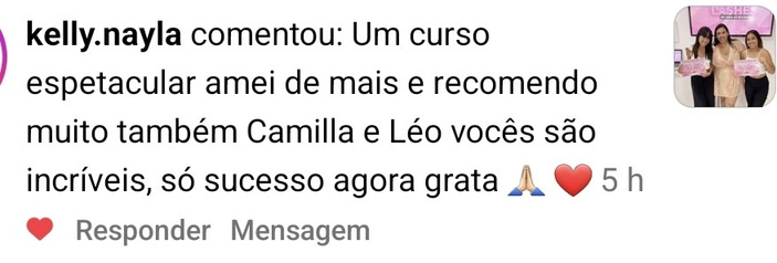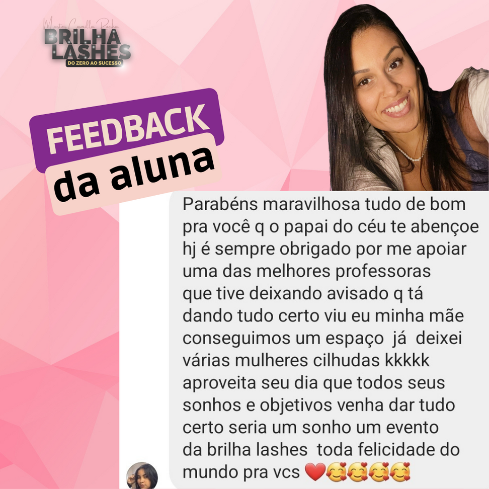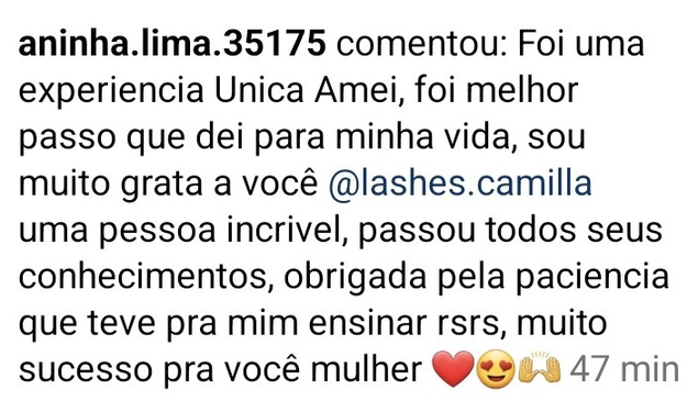 ``Trabalhar realizando extensões de cílios é promover autoestima para outras mulheres e ter uma vida profissional independente, conquistando uma qualidade de vida jamais sonhada para você e seus familiares``