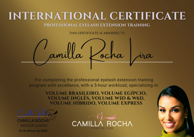 Apenas profissionais com formação de nível MASTER INTERNACIONAL possuem a autorização para emitir este tipo de certificação. A certificação internacional representa o reconhecimento de que a sua qualificação como extensionista de cílios pelo nosso Studio atende aos padrões internacionais e práticas adotadas globalmente.