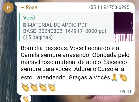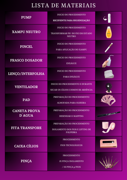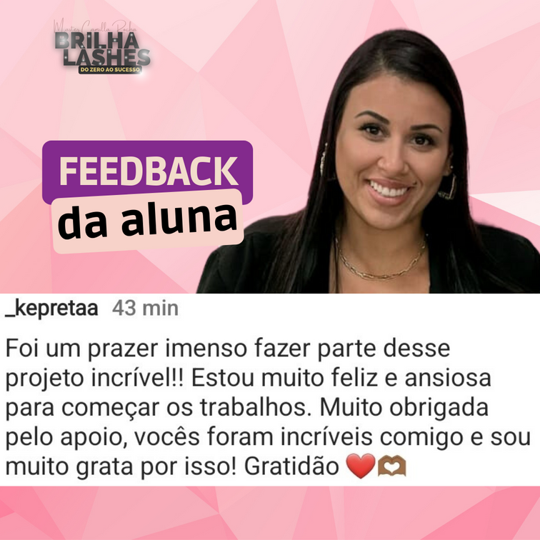 Você receberá um material de apoio único, que será enviado via WhatsApp ou e-mail. Estes materiais incluem uma apostila digital completa, PDFs com mais de 300 páginas contendo informações detalhadas e todo o conteúdo abordado em nosso curso. Além disso, terá acesso a uma lista completa de materiais, detalhes de fornecedores parceiros (com descontos exclusivos para as alunas do Brilha Lashers), bem como materiais de marketing para auxiliá-lo na conquista dos seus primeiros clientes, na construção da sua presença nas redes sociais a partir do zero, e muito mais.